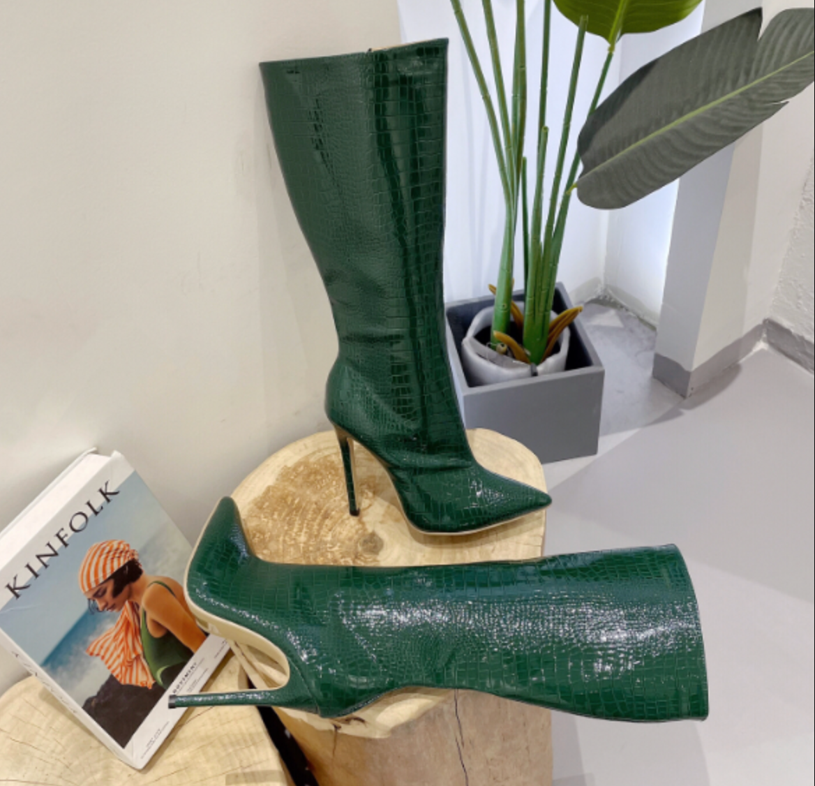 Designed for the woman who seeks power in simplicity. These high-cylinder knight boots feature a sharp, pointed toe and a precision-engineered slim heel, creating a continuous, elongated silhouette. Crafted from high-grade architectural PU with a refined solid-color finish, they offer a waterproof and durable alternative to traditional leather without sacrificing the luxurious aesthetic.